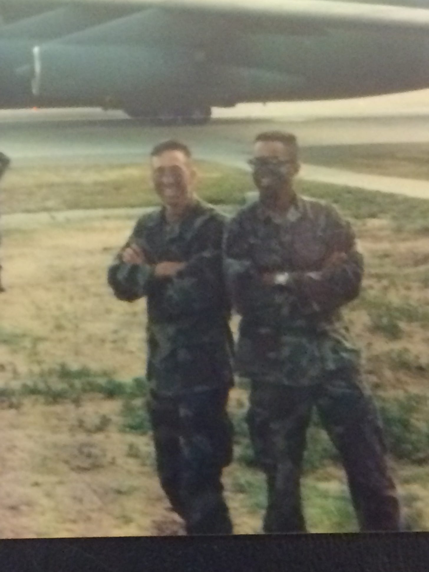 Pictured here, me(R) and a fellow paratrooper. This picture was taken the same year as Haiti 180 (1994) and same location where we always conducted aircraft load out for airborne operations, just on a different day. The aircraft type in the background is no longer in service…just as I am no longer in service.